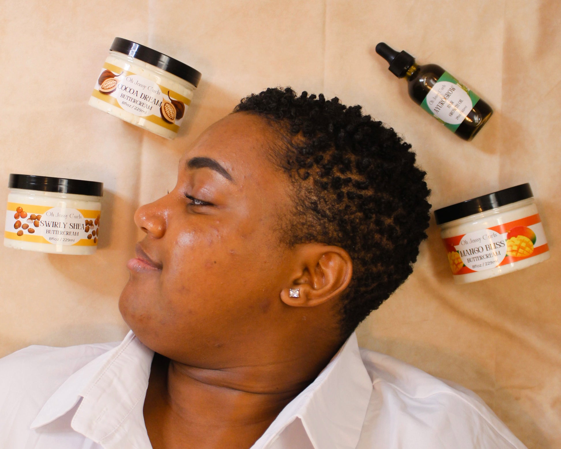 Oh Jassy Curls consist of all natural and organic butters, oils and herbs. Be sure to perform a small patch test for any allergies. Discontinue product should reactions arise or consider another product.